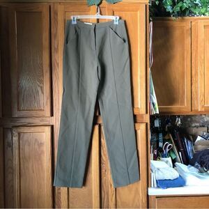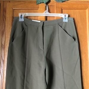 Elevate your wardrobe with these stunning Narciso Rodriguez ankle pants. Made from a high-quality wool blend, these pants feature a flat front and a tapered leg style that is perfect for a sleek and modern silhouette. The pants come in a beautiful shade of green and are perfect for any occasion, whether it's for travel, party/cocktail, casual, formal, or business.