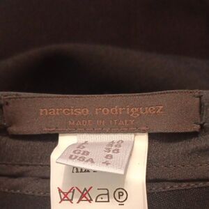 Beautiful seaming defines the gorgeous pencil skirt by Narciso Rodriguez. Every panel is finished on the inside. See last photo. 100% wool with a tiny bit of stretch so that this skirt fits perfectly. Size 4 is 26 at waist, 36 at hips, 32 at bottom hem for a perfect pencil shape. Crafted in Italy, of course.