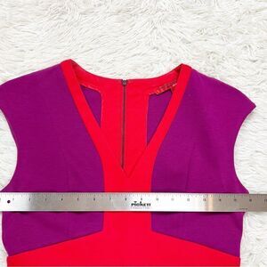 Super cute pre-owned Narciso Rodriguez for Design Nation Purple and Red Knit Fitted Shift Dress Size XS. Exposed zipper that runs all the way down the back. Has stretch, fits a size 0-4. No stains or holes. Please ask all questions before purchasing.