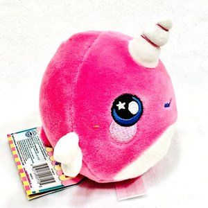 Narciassa Narwhal Squeezamal plush toy season 2. Pink and white unicorn with moon and star eyes. Approx. 4 inches from bottom to top. New with all tags. For ages 3+, Season 2 (2018).