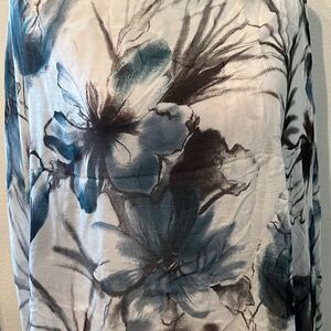 Nardi&Tagliaferri white&blue flower print scarf wrap sarong approx 70” long EUC