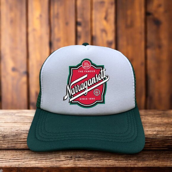 Narragansett Brewery Mens Trucker Hat Green Snapback Beer Retro Baseball Cap