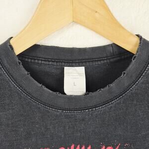 There is distressing on the collar and ends of the shirt shown in the pictures. Please use the pictures to judge the condition and measurements because I dont accept returns. Feel free to message me if you have any questions or offers. Thanks for viewing, and make sure to check out my other listings