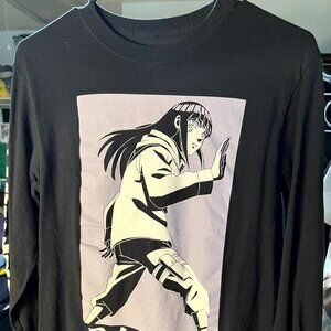 Naruto Shippuden Hinata 100% Cotton Black Graphic Long-Sleeve T-Shirt SZ Small