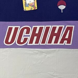 Get ready to join the Uchiha clan with this Naruto Shippuden-inspired tee! Featuring multi-colored panels at the top, this shirt includes "Uchiha" lettering and a design of the clan's symbol, perfect for adding an anime touch to your look.