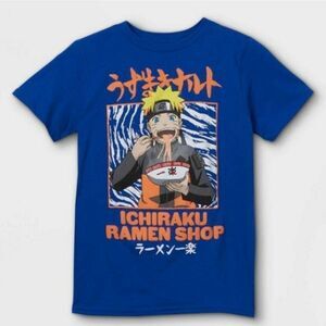 Your ninja will realize his dream of becoming the Hokage when he steps out in the Naruto Ichiraku Ramen Shop Short-Sleeve T-Shirt. Featuring an illustration of Naruto eating his favorite Ichiraku Ramen noodles.