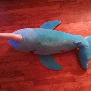 Narwhal Whale 40" Plush Stuffed Animal Toy Narwhale Pre Owned Rainbow Belly
