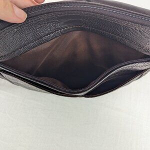 This purse is in great pre-owned condition with no visible flaws. It may be real leather, but likely faux leather with a cute snakeskin or alligator print. Approximately 10" x 8" x 3".