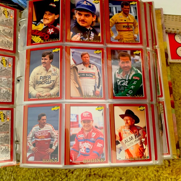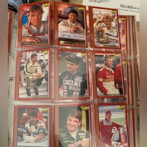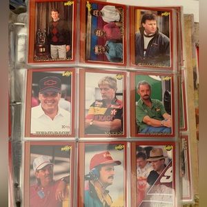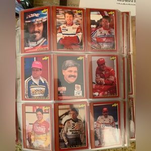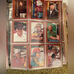 I have a book full of the nascar collector cards. I am posting 16 of the 28 pages I have available. They are in mint condition. I would love to sell them as a package deal but am willing to sell the pages separately. You get a better deal if you purchase all cards, because the pages are priced based on the people on each page.
