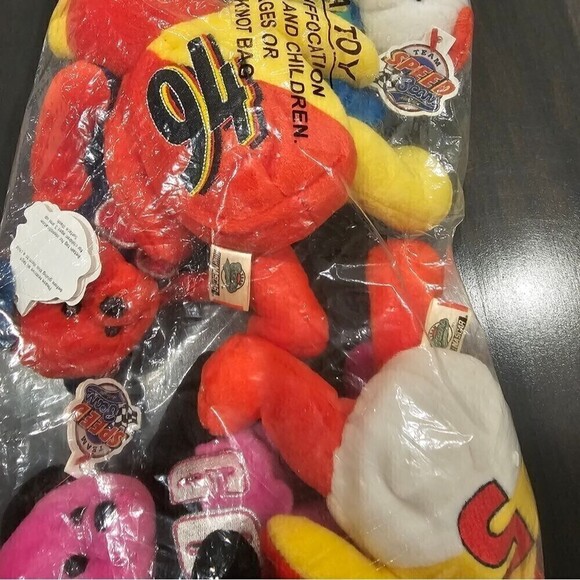 Set of 10 Team Speed Bears made in 1999, including rare Dale Ernhart Sr and Jr both #3, Jeff Gordon, Dale Jarret, Bobby Labonte, Jeff Burton, Terry Lebonte. Bill Elliot, Mark Martin and Rust Wallace. All have original ear tags. New sealed in original packaging