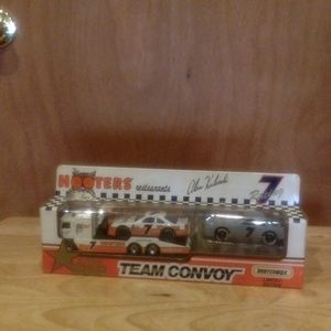 Nascar Hooters Alan Kulwicki Racing #7 Team Convoy Limited Edition Truck, Trailer, and 2 cars. Made by Matchbox 1993. Never out of the box. Size 1:64.