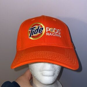 Nascar Otto Tide Pods Racing #20 Cap America Orange Adjustable Hat Cap Embroidered. Very good preowned condition. Only flaw is small mark on Velcro closure shown in pictures. Large embroidered front and 20 on side.