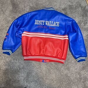 Nascar Rusty Wallace Chase Letterman Jacket Red White Blue Coat Men's Large L