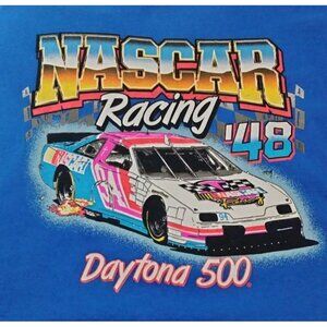 NASCAR shirt, Daytona 500, racing T-shirt, blue cotton tee, size XXXL, casual wear, graphic tee, men's top, car print, comfortable fit, short sleeve, NASCAR fan, machine washable, sports apparel