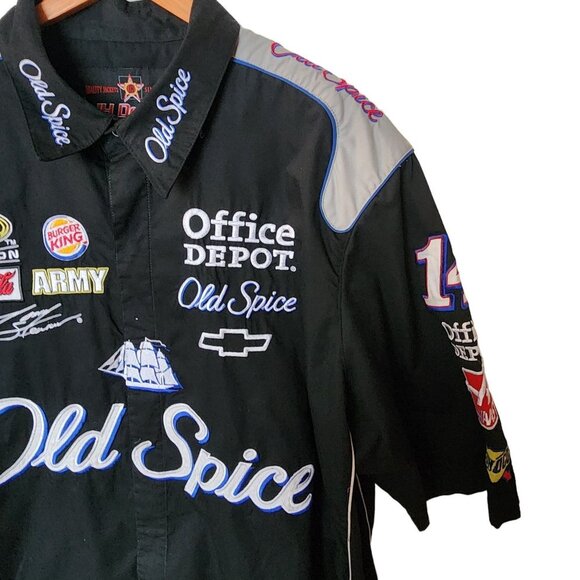 Nascar Tony Stewart JH Design Crew Button Shirt Sleeve Old Spice Black Size 2XL