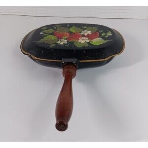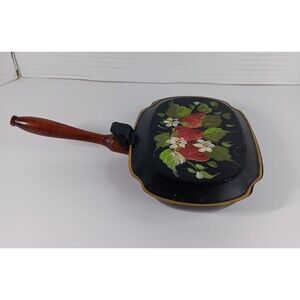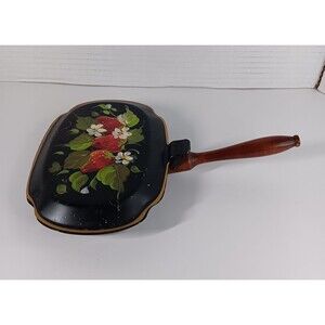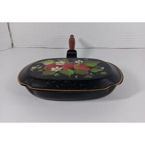 Nashco Hand Painted Tole Ware Metal Butler Crumb Catcher Vtg Strawberries Floral