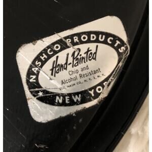The Nashco Toleware Hand Painted Flowers Round Metal Tray is a vintage piece with a beautiful floral pattern in black, pink, blue, and gold colors. This 11" tray is perfect for all occasions and features a painted finish, making it a unique addition to any home decor. Made in the United States by the Nashco brand, this original serving tray is a must-have for collectors of vintage kitchenware and serveware.