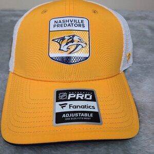 Cap off your game day attire with the vibrant Nashville Predators Authentic Pro Draft Mesh Trucker Cap. This one-size-fits-all hat, brand new with tags, features the bold yellow color synonymous with the team, complemented by the sleek design of the NHL's regular season. Manufactured by Fanatics, it's an officially licensed piece that ensures you're decked out in genuine team spirit. Constructed for comfort and style, this cap is a must-have for any die-hard hockey fan or collector of sports memorabilia. The cap's durable Vietnam craftsmanship pairs well with any casual outfit, making it a versatile addition to your wardrobe. Whether you're at the arena or on the streets, show your support for the Nashville Predators with this sharp-looking accessory. Nashville Predators Hat 2023-24 NHL Authentic Pro Draft Mesh Trucker Cap NWT New