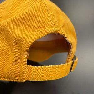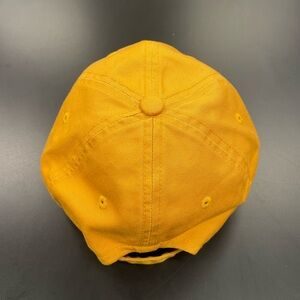 Bright yellow cap featuring an embroidered logo on the front. Stylish and eye-catching.