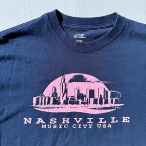 Excellent like new pre-loved condition - no rips, tears, pulls or stains Measurements (approx.): Length = 24" Pit to pit = 22" Sleeve = 7" (from shoulder hem) Trendy Nashville women’s t-shirt in size large. Features “Music City” country music graphic on a soft cotton blend. Oversized fit with a slightly cropped cut for a casual, relaxed vibe. Perfect souvenir tee for travel, concerts, or everyday wear. Nashville t-shirt, women’s large, oversized cropped tee, Music City, country music shirt, travel souvenir, concert tee, casual graphic top, tourist shirt, trendy relaxed fit Sanitized, carefully measured & stored in a smoke-free environment. I do my best to describe & measure accurately & ship same or next business day. Please contact me with questions or issues. Thank you for shopping sustainably & supporting my small business!