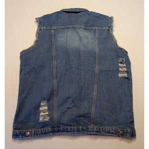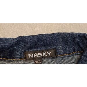 Nasky Dark Wash Distressed Ripped Denim Vest Sleeveless Retro Jean Jacket 2XL