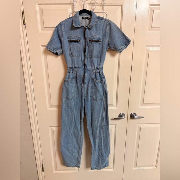 Nasty Gal 100% Cotton Distressed Denim Zip up Boiler Suit Stranger Things Boho