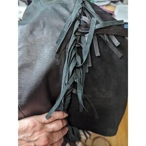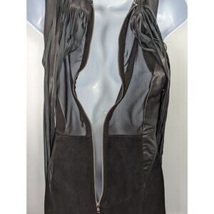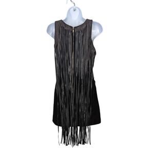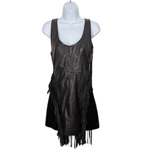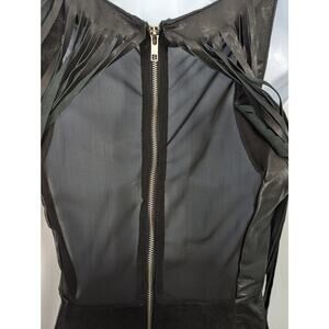 Nasty Gal Black Leather Suede Sleeveless Mini Dress Long Fringe Mesh Back Small