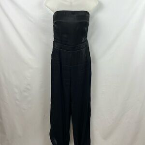 Nasty Gal Black Satin Belted Strapless Jumper Jumpsuit with Ties Size 4