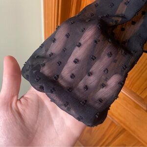 Nasty Gal Black Swiss Dot Sheer Tie Front Long Sleeve Crop Peplum Blouse