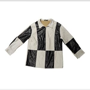 Nasty Gal Black and White Petite Mono Patchwork Faux Leather Shacket size 8 EUC