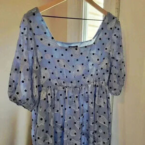 Nasty Gal Blue Feather Poka-Dot Printed Mini Dress, Size 8