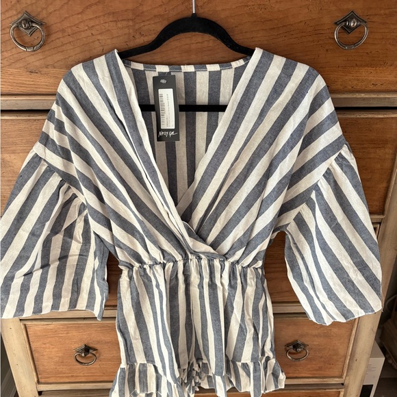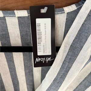 Nasty Gal Blue and White Striped Wrap Romper