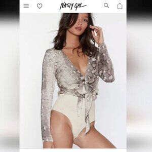 Nasty Gal Bodysuit Life Is What You Snake It Tie Front Long Sleeve New Size 4