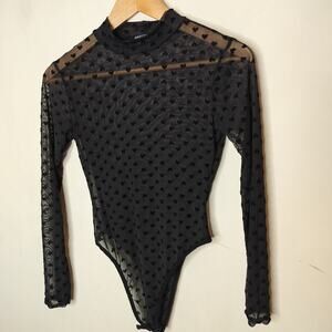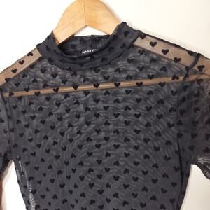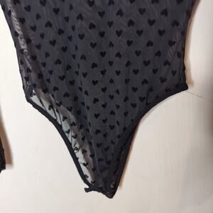 Nasty Gal Bodysuit Sheer Heart Pattern Long Sleeve