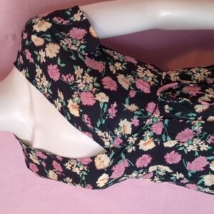 Nasty Gal Cap Sleeve Floral Wrap Maxi Dress in Navy and Pink Floral Print size 2