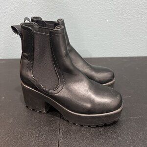 Nasty Gal Chunky Platform Block Heel Boots Womens 7 Black Faux Leather Bratz Y2K