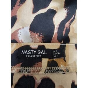 Nasty Gal Collection Mini Skirt Size 4 Faux Wrap Satin Animal Print Ruffle