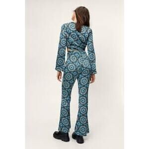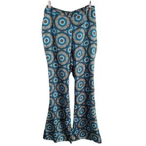 Nasty Gal Collection Retro Hippie 70s Print Wide Leg Flare Pants Sz 6