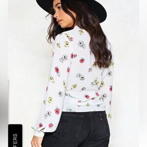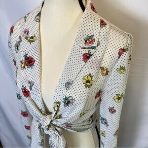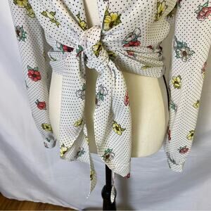 Nasty Gal Collection Tied To You Floral Shirt Women’s Small Polka Dot Blouse