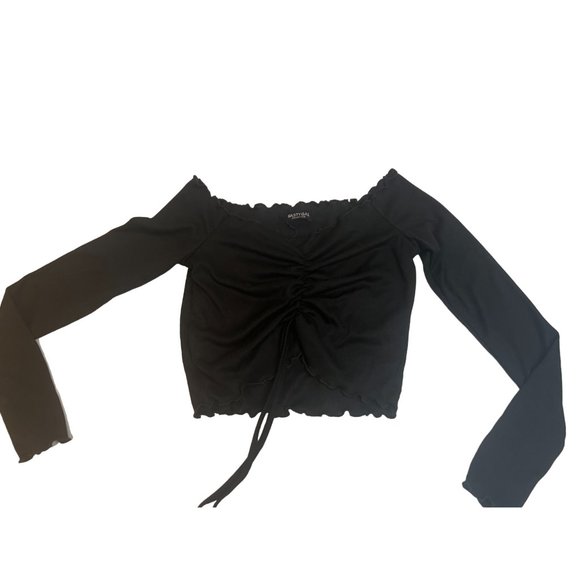 Nasty Gal Collection Women Cropped Top Ruched Ribbed Long Sleeve Black Size 4