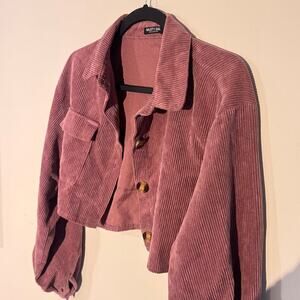 Nasty Gal Corduroy Cropped Shacket - Dusty Rose Button-Up Jacket