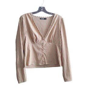Nasty Gal Crop Top Orange & Chartreuse Seersucker Covered Button Detail 4