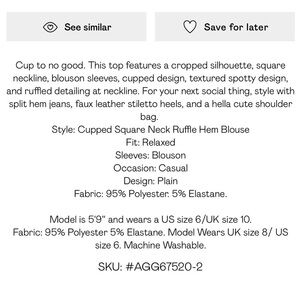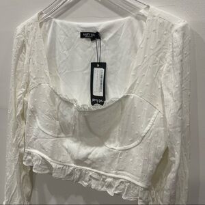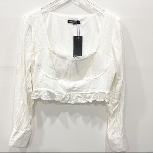 Nasty Gal Cupped Square Neck Ruffle Hem Blouse in White Size 6 New