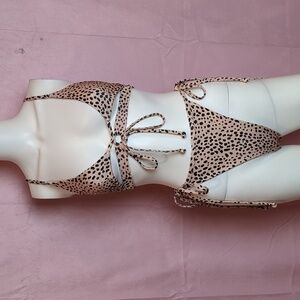 Nasty Gal Dalmatian Tie Detail Cut Out Triangle Bikini in Nude size 2