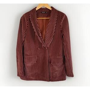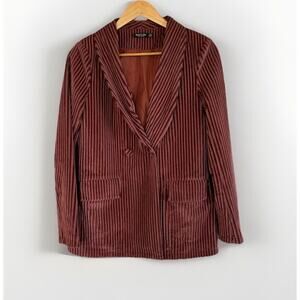 Nasty Gal Dark Pink Velvet Striped Blazer Size 4 Jacket Lined