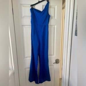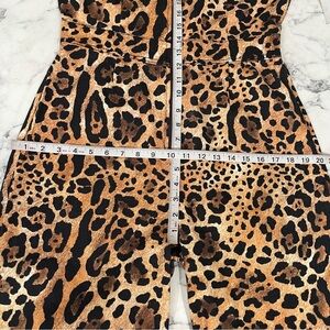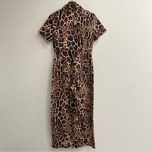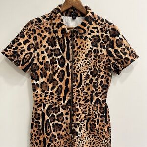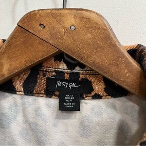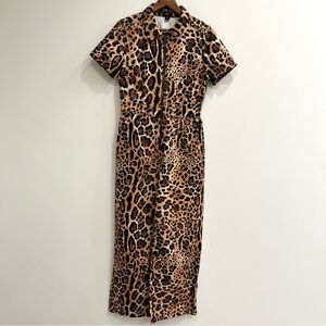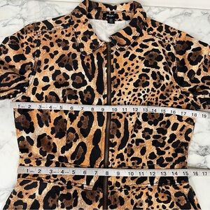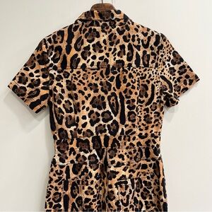 Nasty Gal Denim Leopard Print Jumpsuit Wide Leg Zip Front Size 8