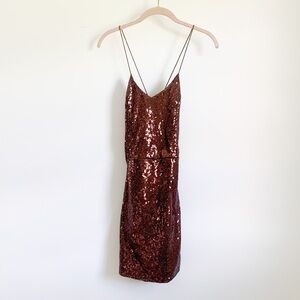 NWT!! Nasty Gal “Don’t Cross Me” Sequin Dress. The Don't Cross Me Dress features a mini silhouette, V-neckline, criss cross back, and sequin detailing throughout. Copper color. Partial zip back.