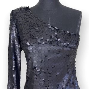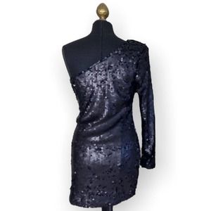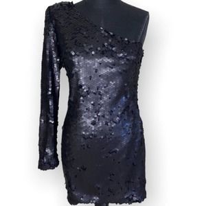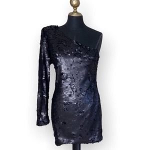Nasty Gal Dress Matte Black One Shoulder Sequin Dress Size Small