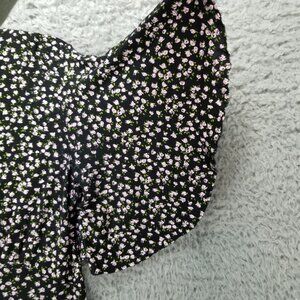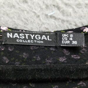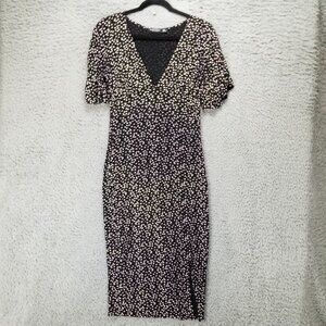Nasty Gal Dress Womens 4 Black Pink Floral Short Sleeve V Neck Pencil Midi