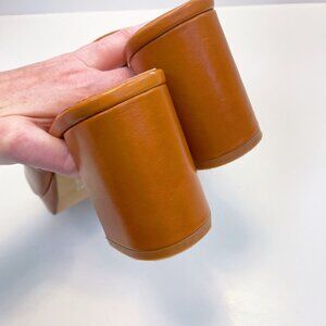 Slip on block heel brown vegan leather mules. Modern square toe.